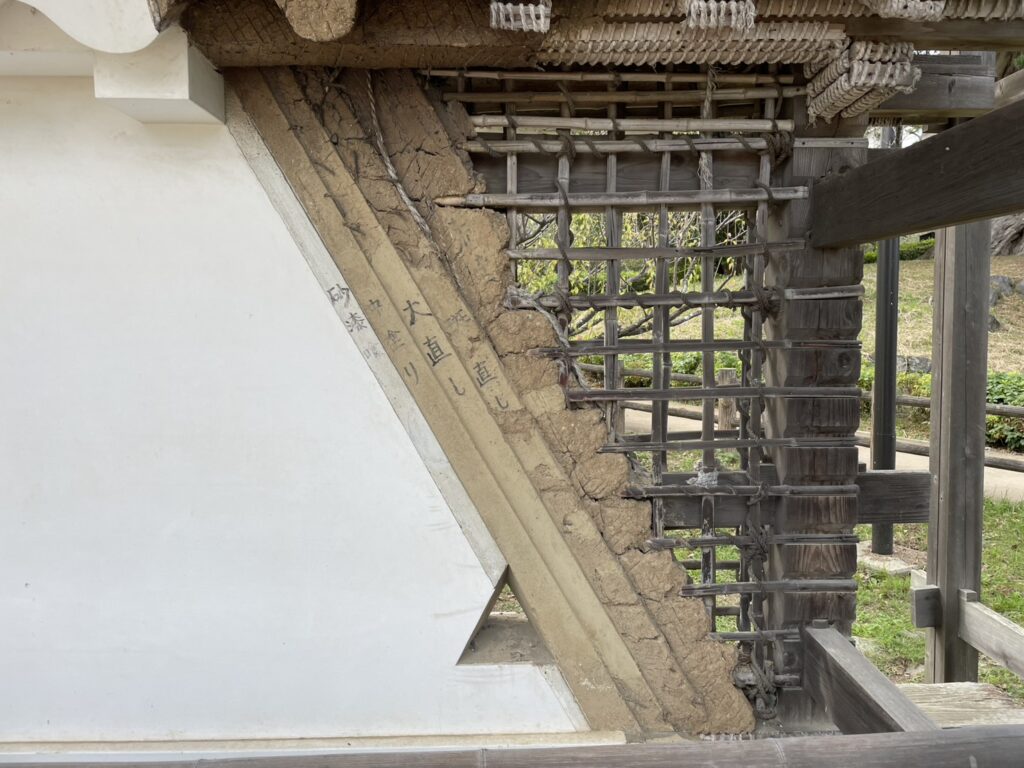 縦横にがっちりと組まれた下地を土で固め、斑直し→大直し→中塗りと3層も塗り表面をならし、