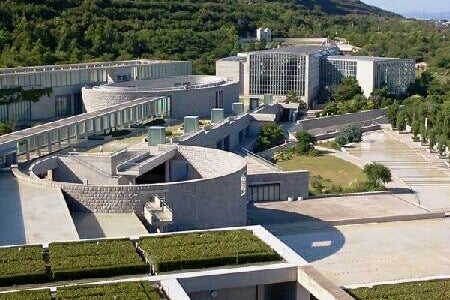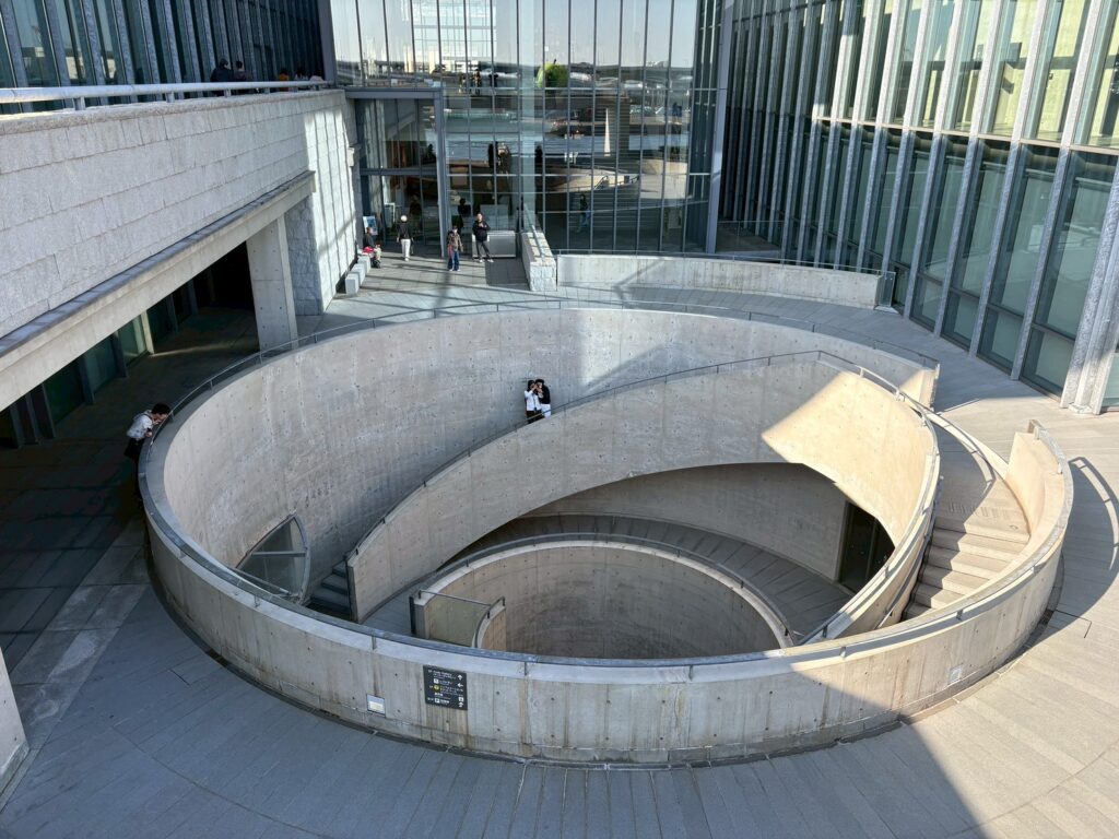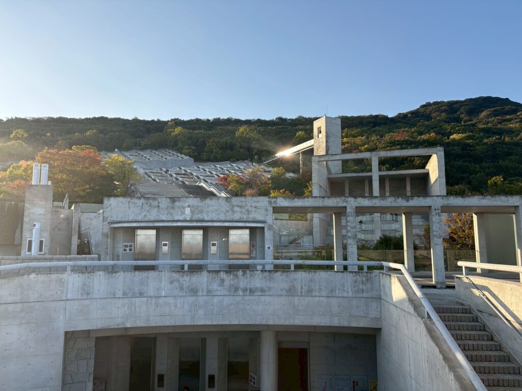 淡路夢舞台は、山の斜面という自然の地形を活かしてつくられた、大規模な建築群です。