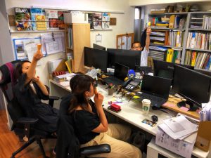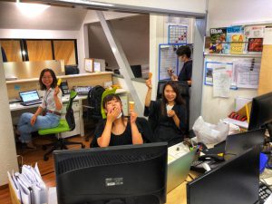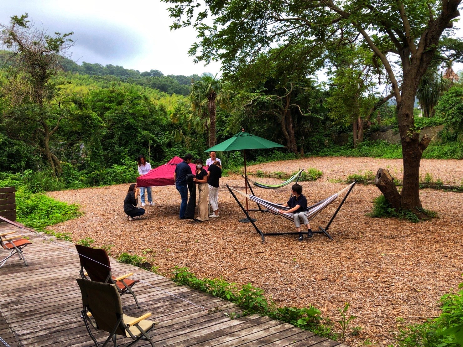 人工芝にあるハンモック二台も下ろします。パラソルも立てます。 スターランドの建設が終わり、あまりのあるさにグダッていたら 社長がアイスを差し入れてくれました
