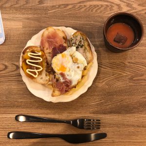 私もバーのカウンターでいただきました!オリーブオイルで揚げ焼きにしている卵はカリカリで、イワシはしっとりして、生ハムは香りが最高!