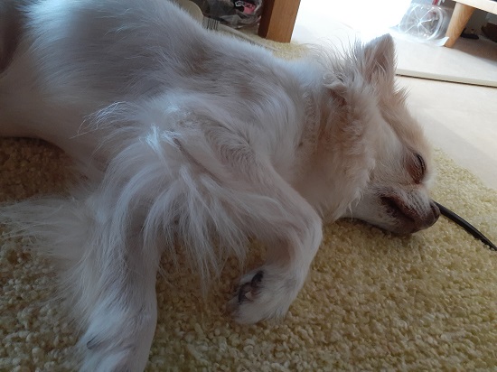 ちび達もあちこちで転がり、静かで穏やかな時間。飼い主もまったりと本を読みつつ、そろそろ睡魔からのお誘いに乗ってしまおうかと思っていた15:00ころ。携帯の音でハッと覚醒。