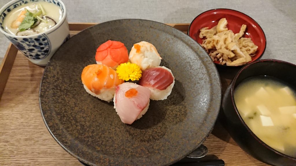 そして少し早めですが、子供の通うお料理教室では手毬ずしを作ってくれました。 可愛らしい色合いのおすしもとてもおいしかったですが、手作り茶碗蒸しがまたとてもおいしくて。大満足の月1ご飯でした。