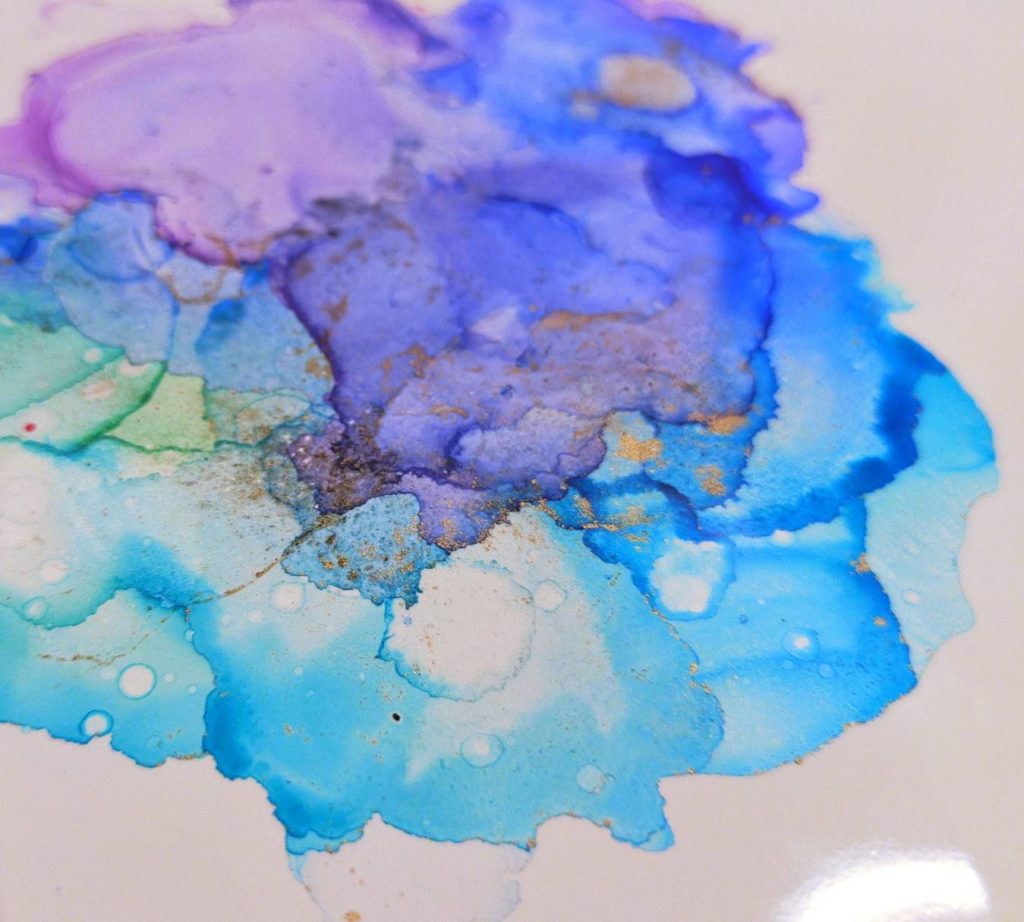 特殊な紙にインクとエタノールを垂らし、ドライヤーで色々な方向から風を送って形作ります。
