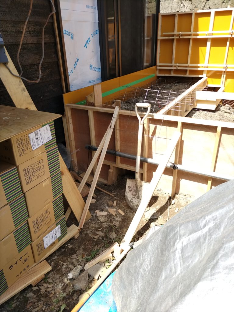 型枠を組んで、コンクリートの下地を作ります。
