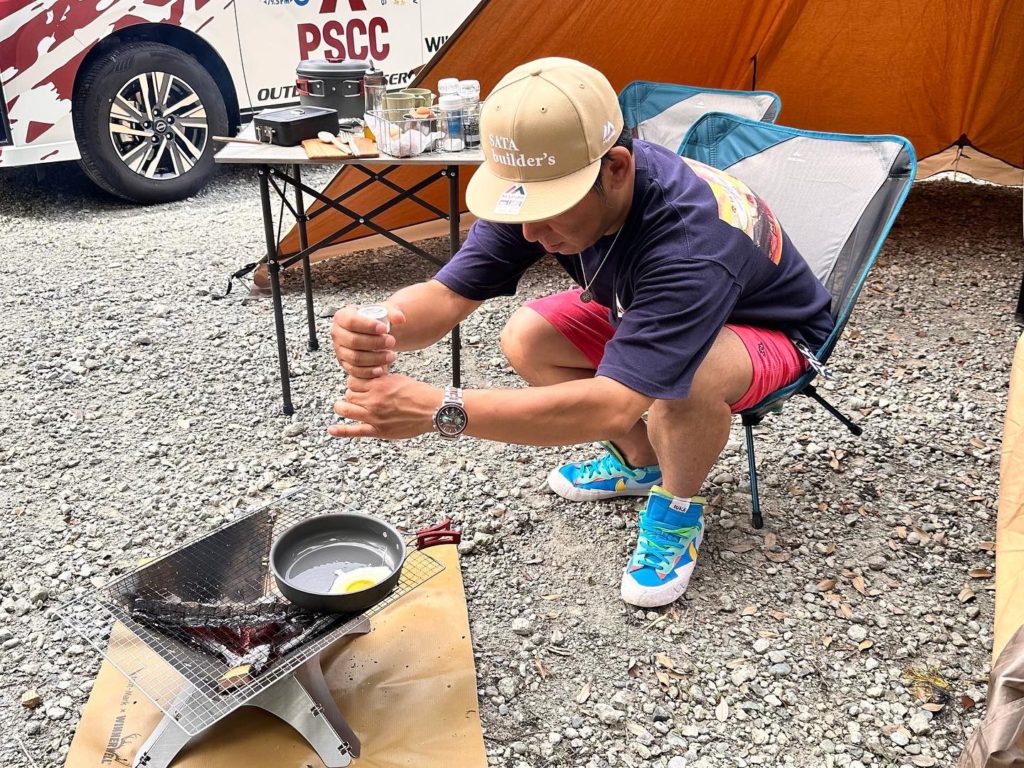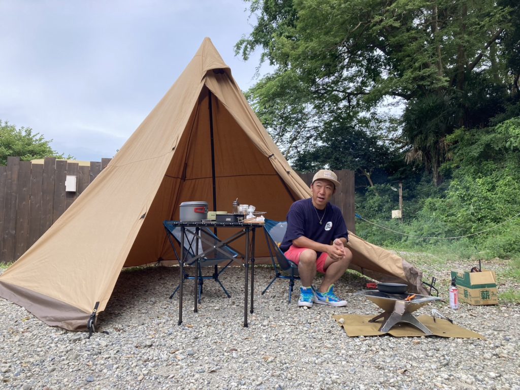 そして、今回の撮影はデッキ付きの【A】サイトではなく砂利の【B】サイトだったのですが、「デッキの上で焚火ができるRVサイトなんて珍しい!最高ですね~!」と気に入ってくださり、「今度バイク🏍でキャンプしに来ます!」との事。